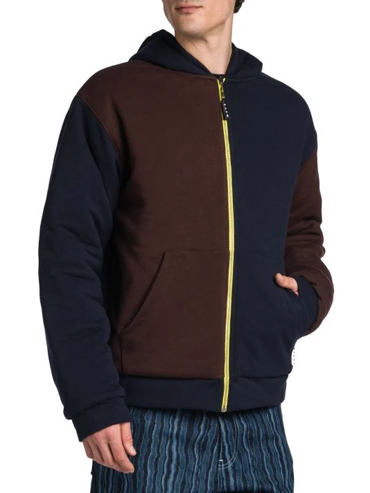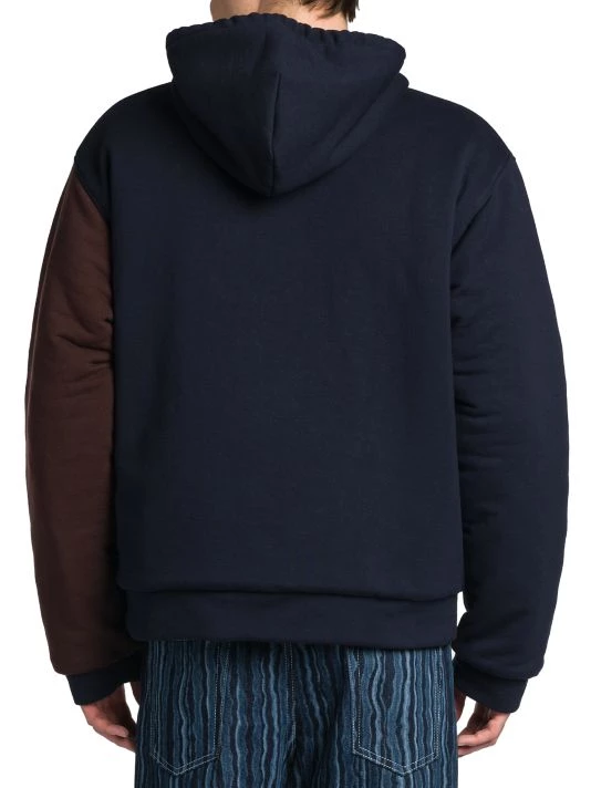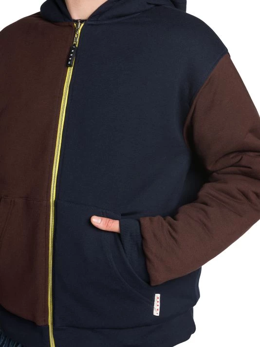 Creative director Francesco Risso kept romance in mind as he hand-developed a collection heavily influenced by cheerful self expression and classic haute couture. For Marni, Risso crafted a line of sun-dried dyed garments, including jackets and sweatpants, all adorned with flowers. This reversible sweatshirt features a hood, split kangaroo pocket, and long sleeves with banded cuffs.