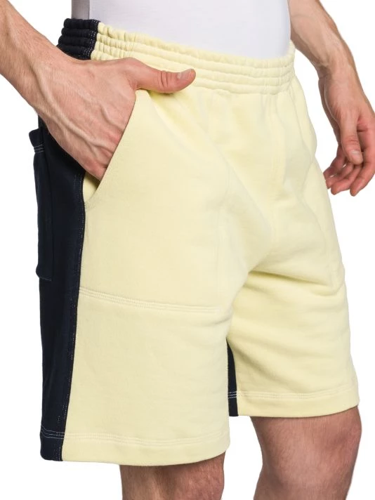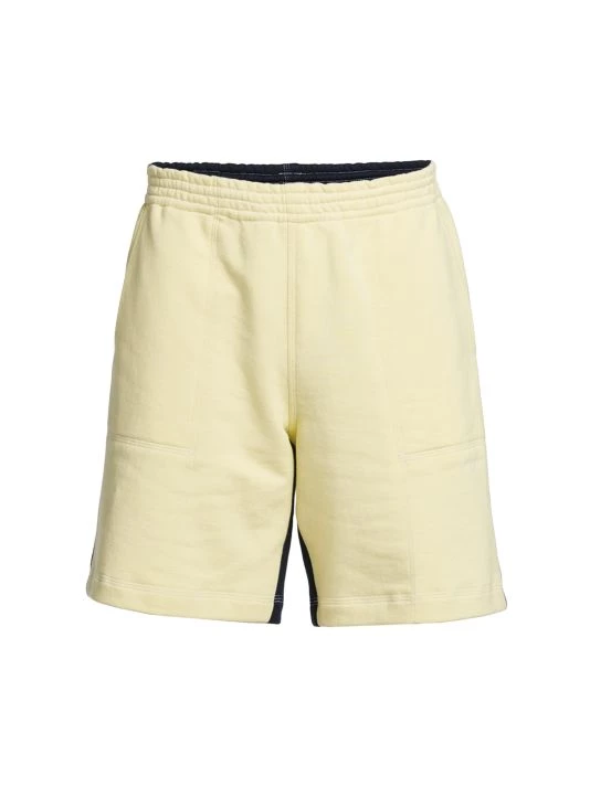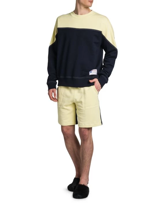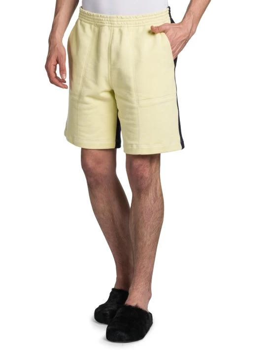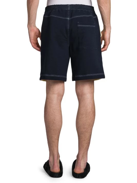 These cotton-knit Bermuda shorts feature a colorblocked design, contrast stitch details, and an embroidered logo.