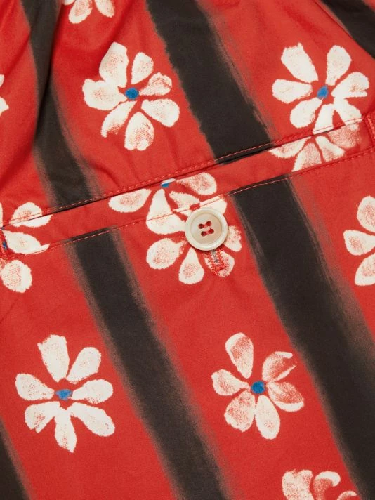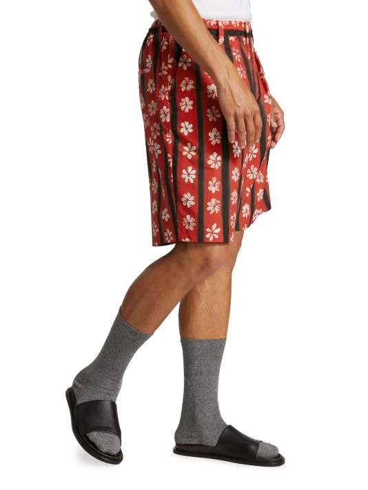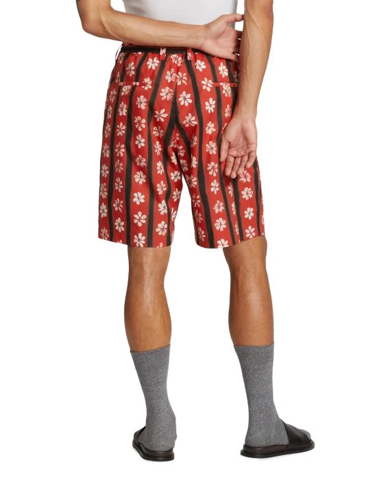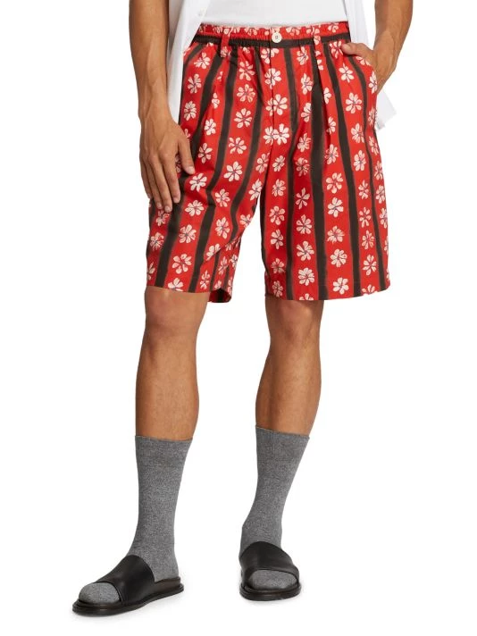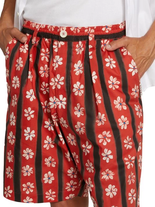 These pleated shorts showcase a painted-inspired daisy and striped print and an elastic waistband.