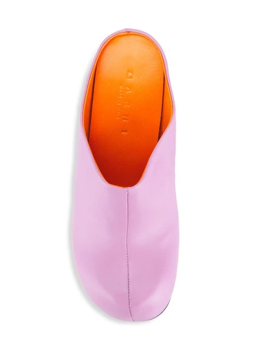 Anchored by a sculptural block heel, Marni’s Fussbett mules are crafted of smooth leather in Italy.