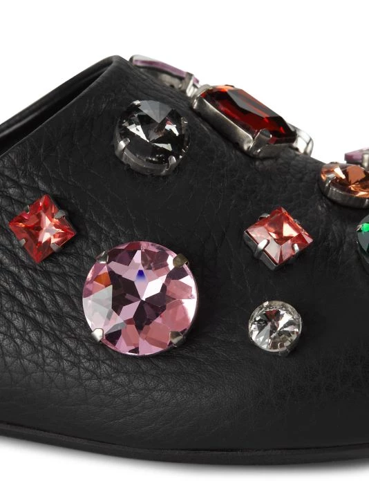 Made in Italy of finely grained leather, Marni’s Fussbett clogs are enhanced with a foil-stamped logo at the sidewall. This laid-back pair is adorned with multicolored oversized crystals.