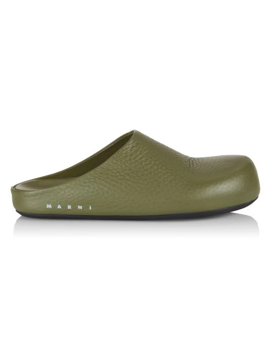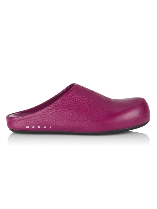 Made in Italy, Marni’s Fussbet Sabot mules are crafted of grained calf leather with a logo signature on the sidewall.
