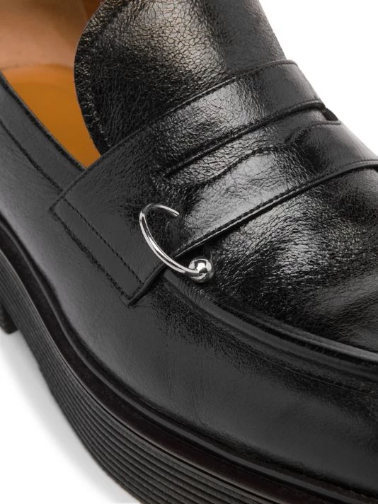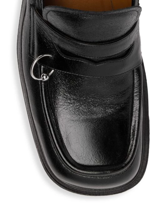 Crafted of leather, these platform loafers by Marni feature a square toe accented with an industrial metal ring.