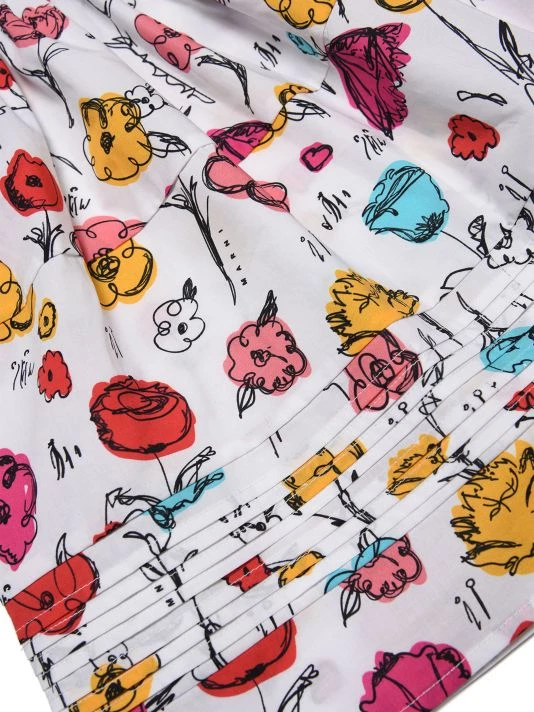Showcasing a whimsical floral print, this cotton shirt is designed with tiered panels and pleating along the bottom.