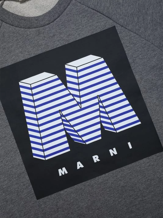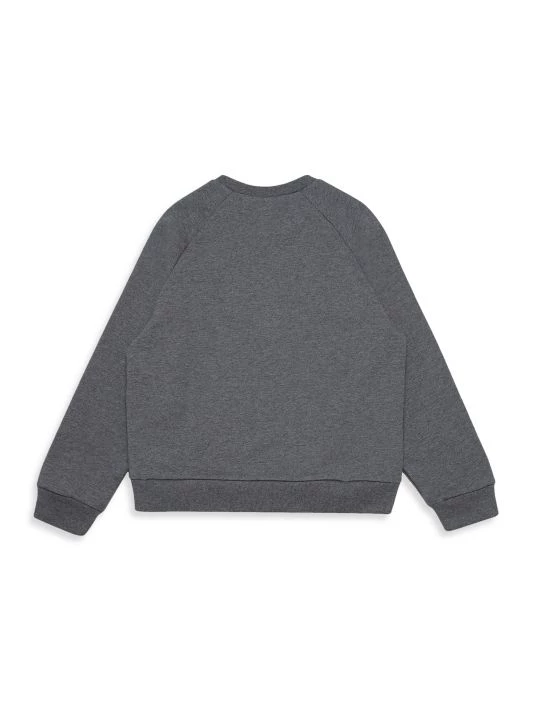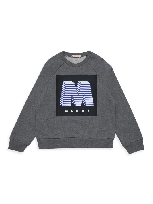 This fleece sweatshirt in a crewneck silhouette is adorned with a striped “M” logo graphic on the front.