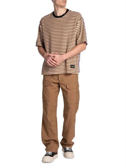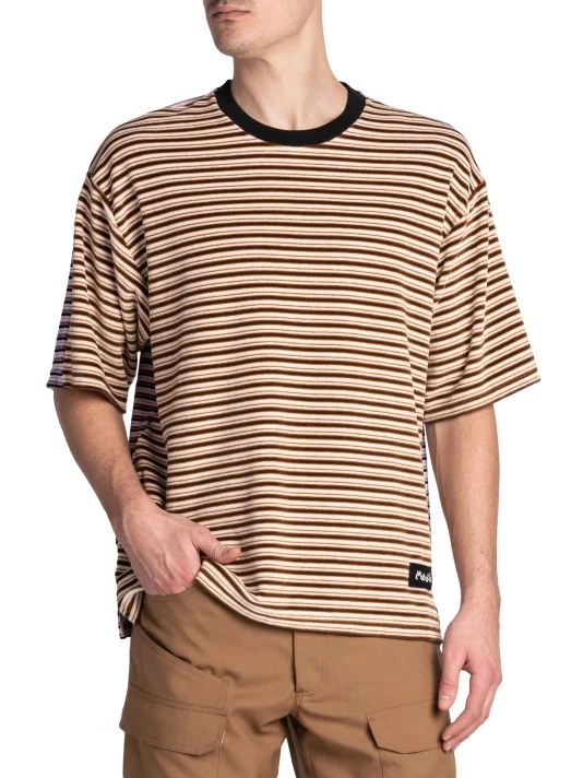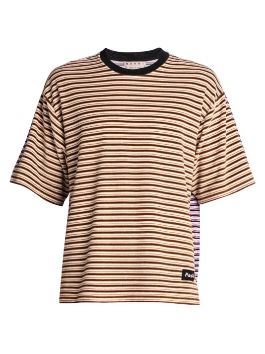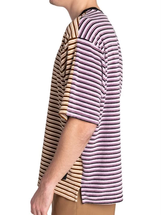 Graphic stripes cover this lightweight stretch cotton terry tee.