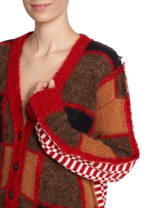 Marni’s cardigan is knit from a soft virgin-wool blend. Made in Italy, this cozy style features a checked pattern at the front and stripes at the back.