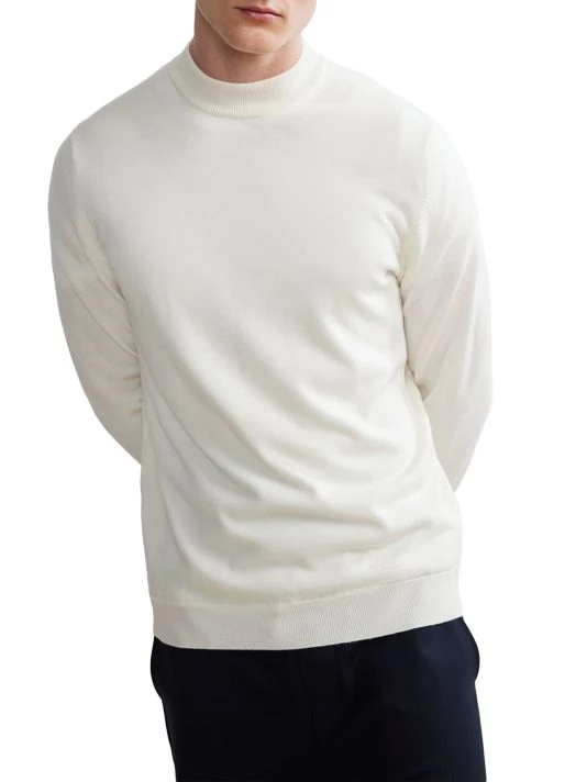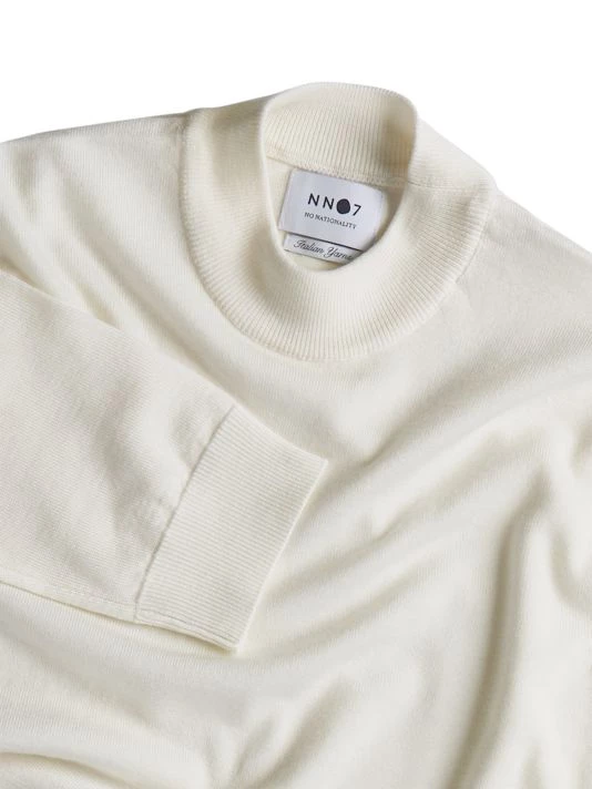 Focusing on versatility and functionality, NN07 created what they label an “Urban Collection”, inspired by three different stories—Commuter, Denim, and Weekend. Expertly crafted from fabrics like cotton, leather, and nylon, “Commuter” includes easy-to-layer essentials, “Denim” is made up of oversized knitwear, and “Weekend” focuses on nostalgic Scandinavian-styled outerwear. This wool sweater features a mockneck and long sleeves with ribbed cuffs.