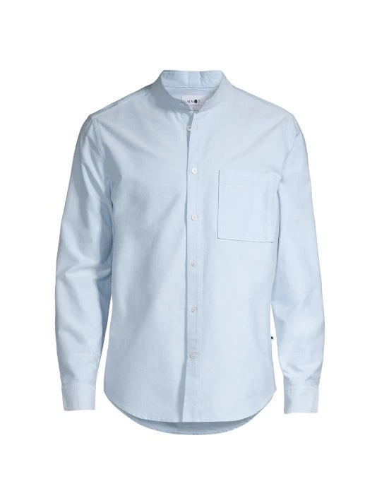 NN07, an abbreviation for “no nationality” and the founding year of the brand, is named for its open-minded, no-borders approach to fashion. The Copenhagen-based label produces exceptionally crafted, versatile essentials, from warm knits and lightweight T-shirts to tailored trousers and casual denim. From The Commuter, The Weekender, NN07 Jeans Collection, this long-sleeve shirt is crafted of ultra-soft cotton with a band collar and classic chest patch pocket.