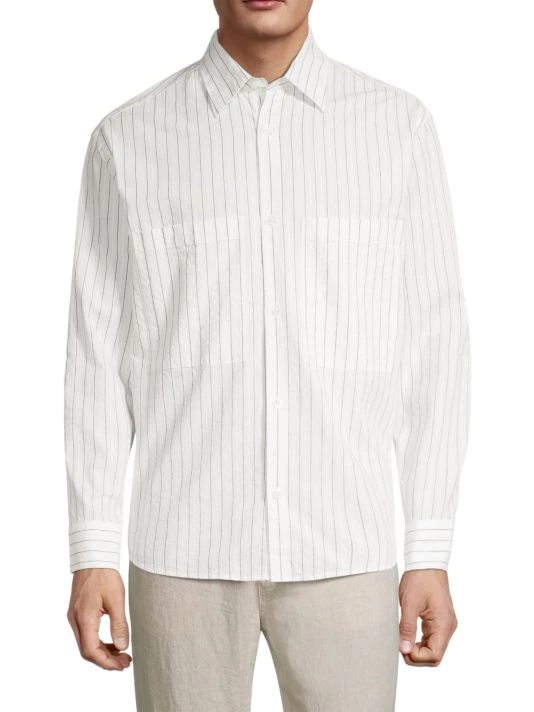 A striped design and a rounded hem enhance NN07’s soft cotton shirt.