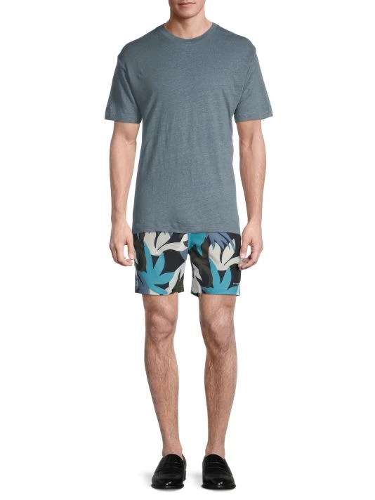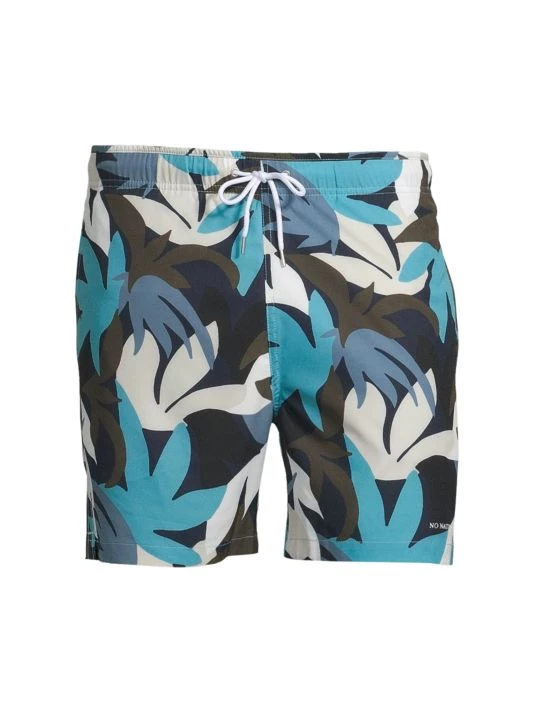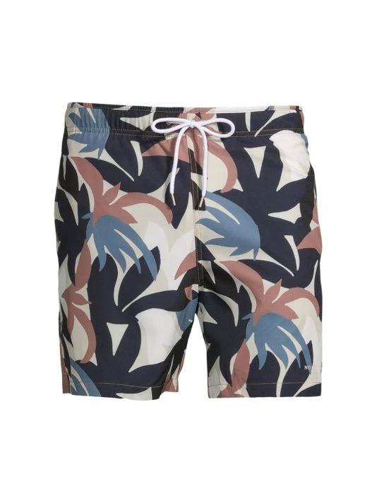 From the High Summer Collection. Crafted of crisp stretch polyester for comfort and ease, these swim shorts feature a dynamic print.