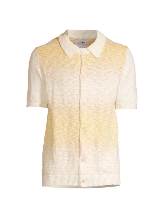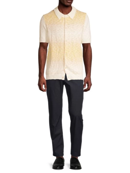 From the High Summer Collection. Knit of an ultra-soft textured bouclé, this short-sleeve polo top blends multi-colored yarns for a délavé, faded effect.