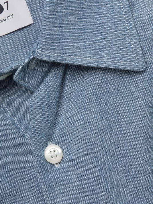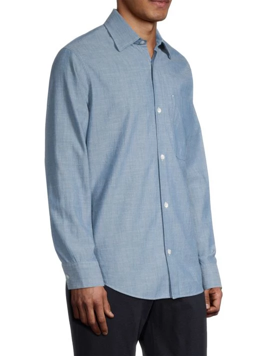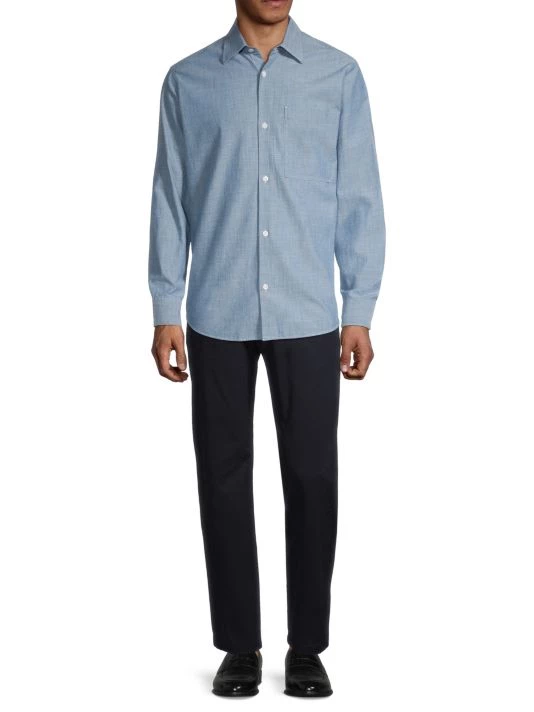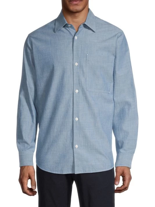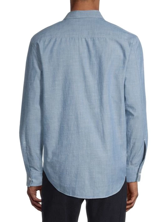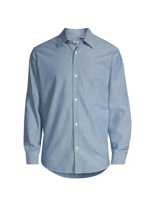 Crafted of soft cotton, NN07’s tailored button-down features a large patch pocket and rounded hemline.