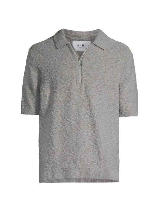 NN07, an abbreviation for “no nationality” and the founding year of the brand, is named for its open-minded, no-borders approach to fashion. The Copenhagen-based label produces exceptionally crafted, versatile essentials, from warm knits and lightweight T-shirts to tailored trousers and casual denim. From The Commuter, The Weekender, NN07 Jeans Collection, this polo shirt is knit using weighty boucle yarn and features a sleek tonal half-zip closure.