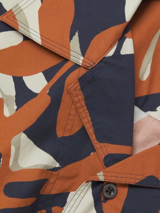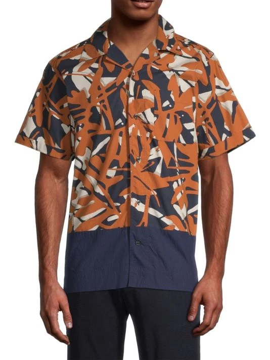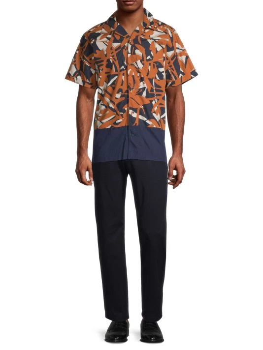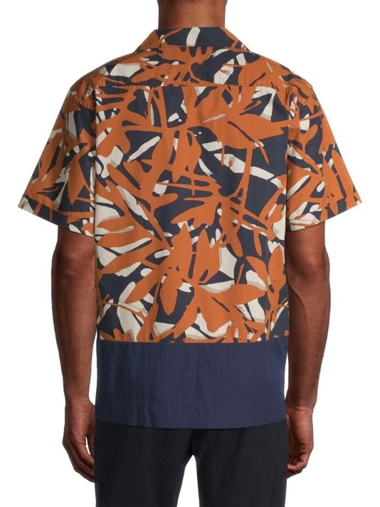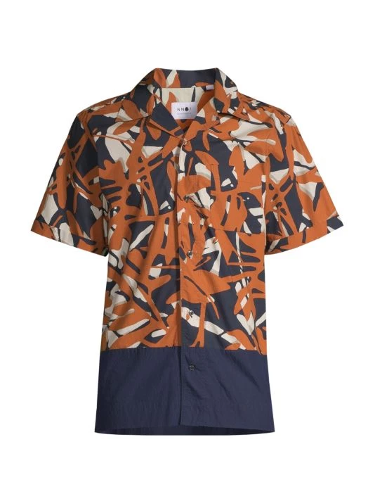 A colorblocked design enhances the botanical print on NN07’s short-sleeve bowling shirt.