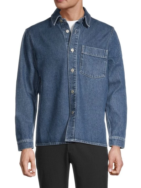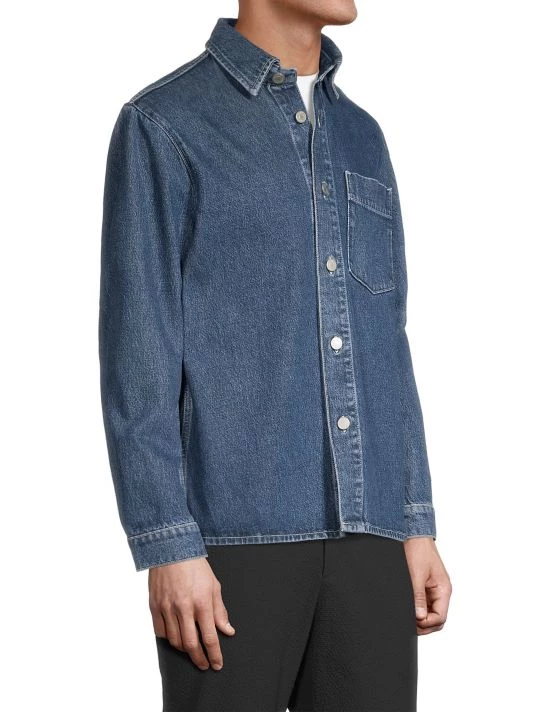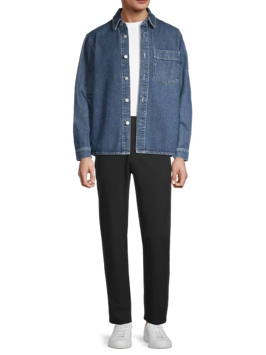 NN07, an abbreviation for “no nationality” and the founding year of the brand, is named for its open-minded, no-borders approach to fashion. The Copenhagen-based label produces exceptionally crafted, versatile essentials, from warm knits and lightweight T-shirts to tailored trousers and casual denim. From The Commuter, The Weekender, NN07 Jeans Collection, this shirt-jacket hybrid is made of midweight denim. It is designed with a single chest pocket and workwear-inspired metal buttons.